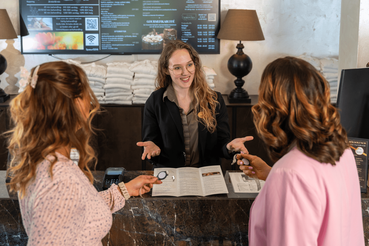 Det bästa med att arbeta i receptionen är att vi får möta gästerna först – och sätta tonen för hela deras vistelse. Här finns alltid energi, gemenskap och känslan av att vi skapar något tillsammans.